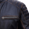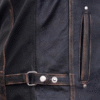 This men’s vintage-style motorcycle jacket is made from high-quality black leather with a distressed finish for a rugged, worn-in look. It features a sturdy front zipper, quilted shoulder detailing, and adjustable side buckles for a customized fit. With four secure zippered pockets and a soft inner lining, it balances utility with comfort. Designed for riders and fashion enthusiasts alike, this jacket adds a bold statement to any outfit while ensuring durability on and off the road.